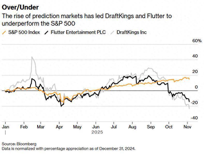预测市场的崛起导致 DraftKings以及Flutter的股价表现不及标普500指数