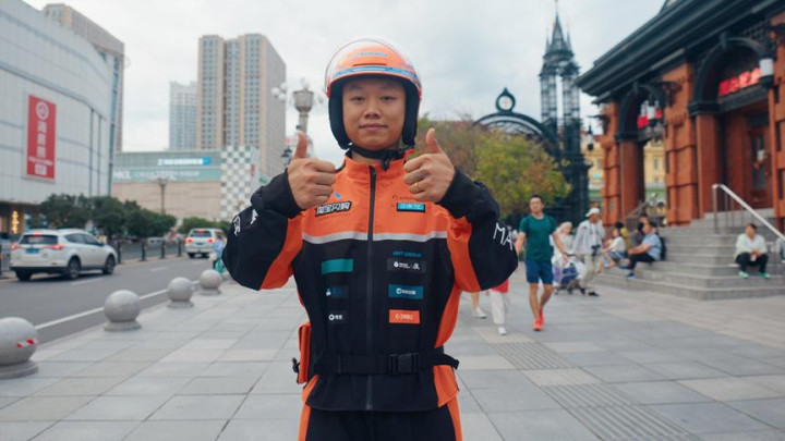 最近一周,这套橙色制服还吸引了各行各业的人群纷纷“换装”,有品牌主理人、知名装裱师、健美运动员、电影幕后工作者、短剧/广告演员、量化策略分析师、摄影工作室创始人等等,他们在社交平台晒出自己的骑士服上身照,致敬骑士群体。